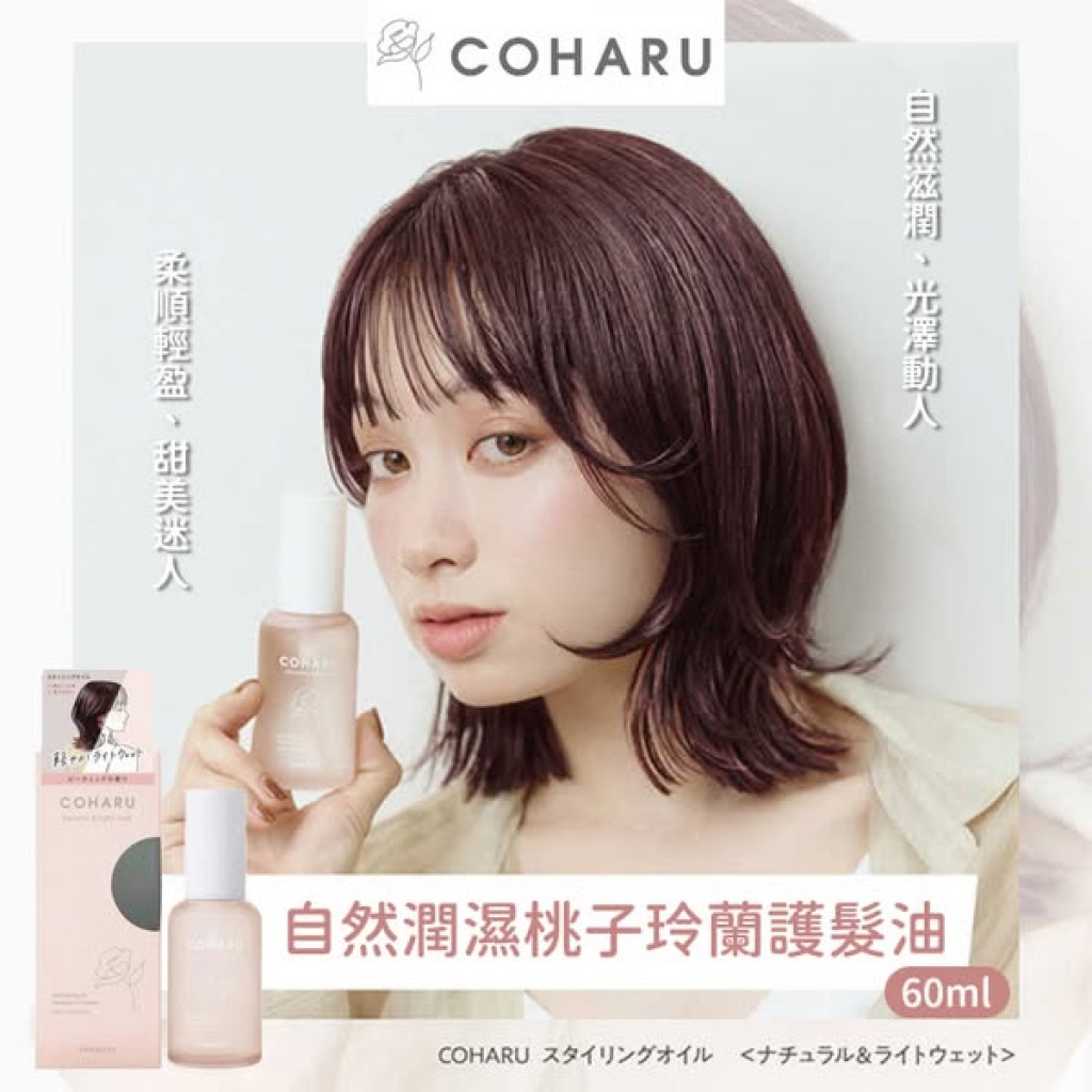 【日本代購】日本柳屋COHARU自然潤濕桃子玲蘭護髮油60ml
