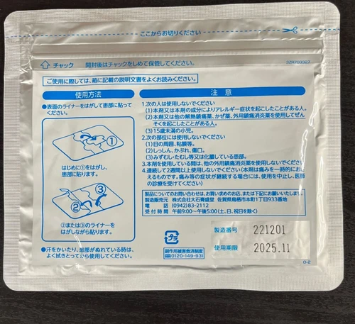 每日1次,針對肩膀疼痛、腰痛和關節疼痛,對嚴重疼痛有作用,