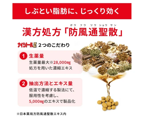 ○有效成分是從28,000mg生藥中提取的防風通聖散提取物5,000mg。