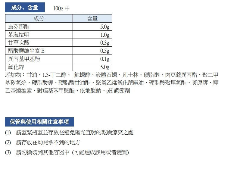 使用方式: 每天數次,將適量藥膏塗抹於患部